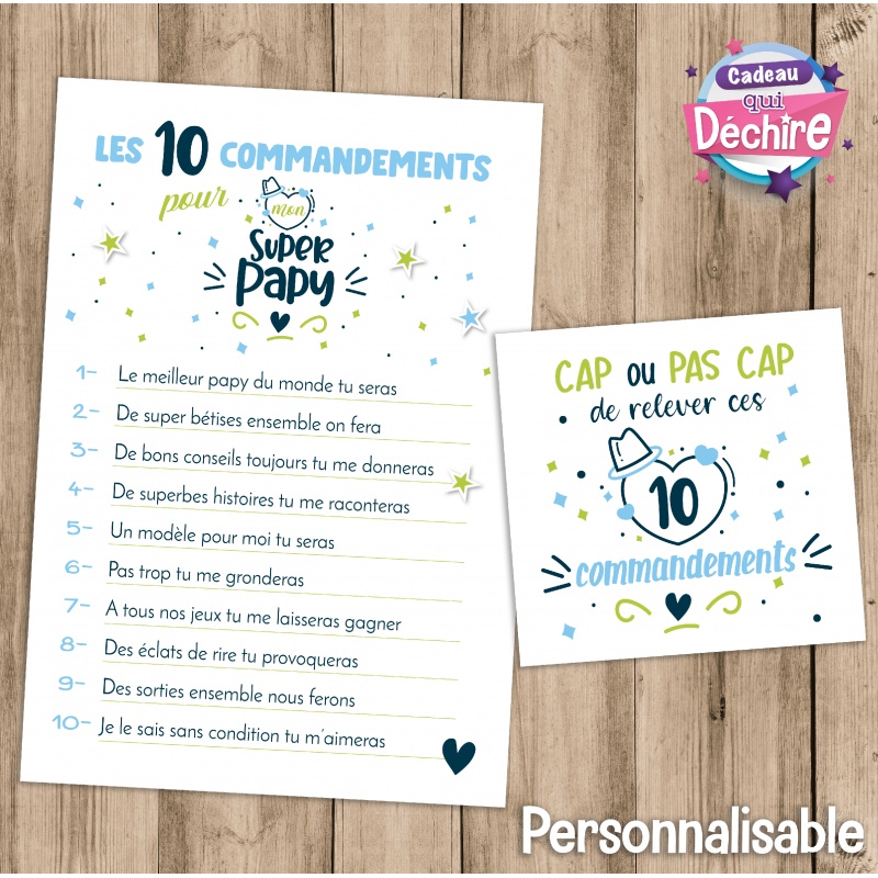 Je peux mettre "Les 10 commandements pour notre papy" et modifier le texte en fonction
