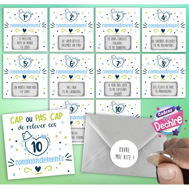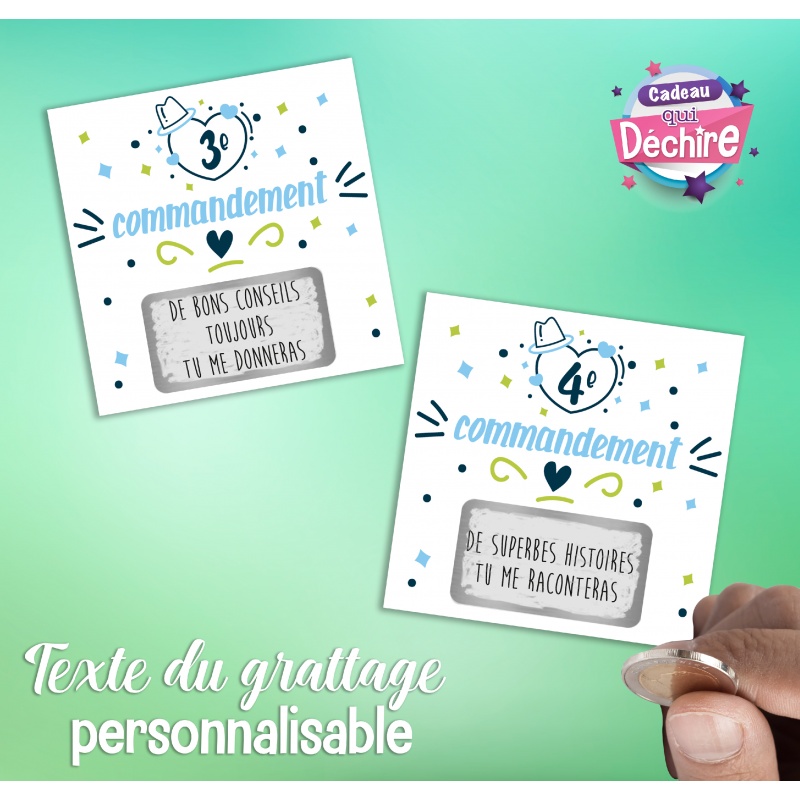 Voici une belle façon d'annoncer un heureux évènement au futur papy ou tout simplement pour le plaisir puisque les commandements sont personnalisables !