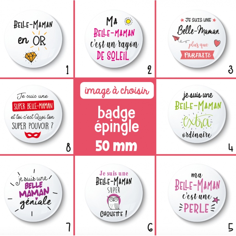 Badge rond format 50 mm pour offrir à sa belle-maman pour toutes occasions.