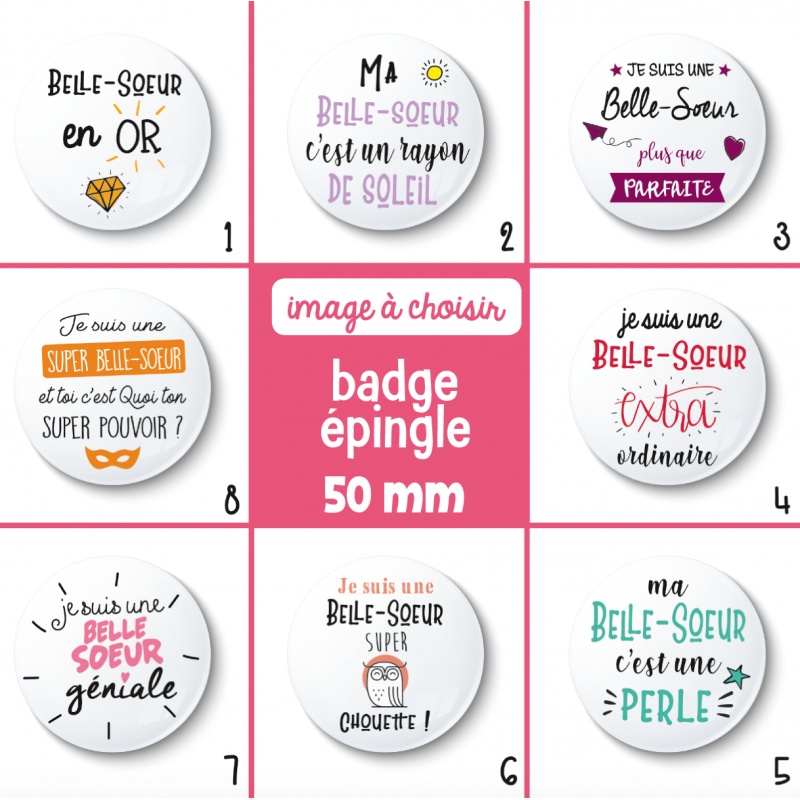 Badge rond format 50 mm pour offrir à sa belle-soeur pour toutes occasions.