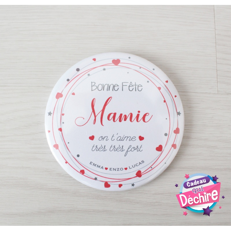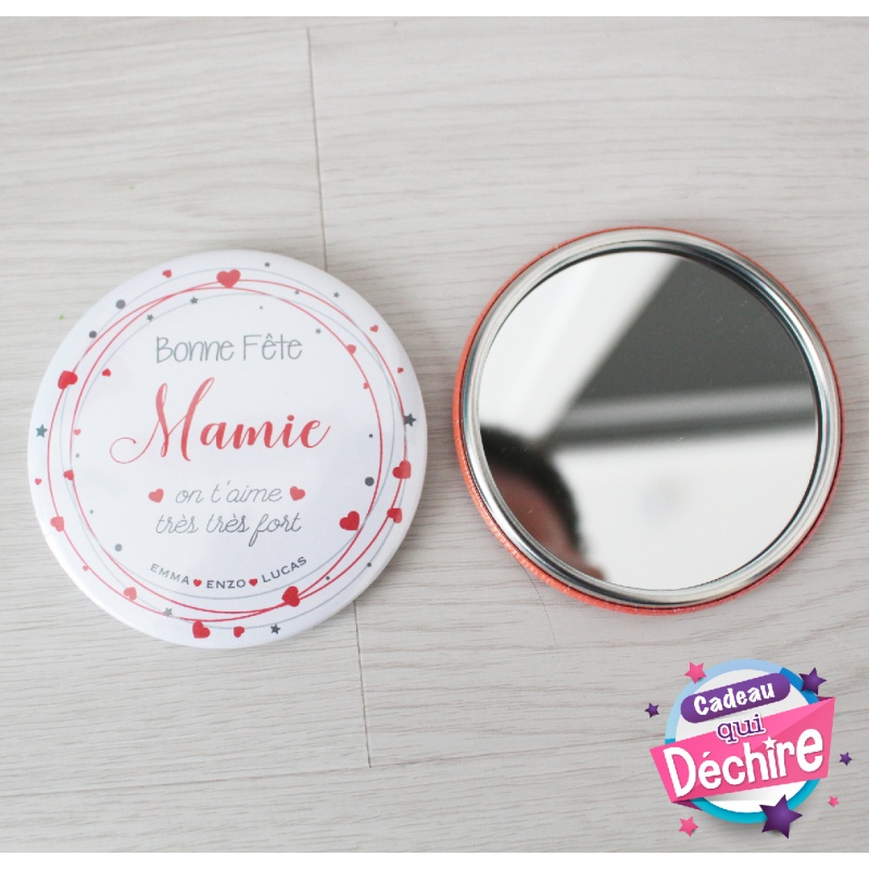 Miroir rond grand format 75 mm à offrir pour sa mamie pour toutes occasions : anniversaire, noël , fête des grands-mères ou pour le plaisir.
