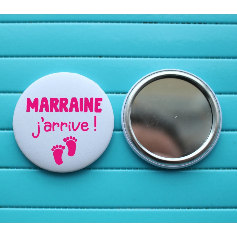 Miroir de poche rond format 50 mm à offrir pour annoncer sa grossesse à la future marraine.