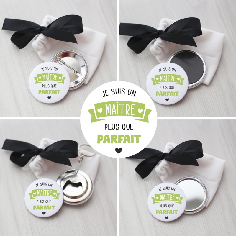 Vous avez le choix entre 4 supports : badge épingle, magnet, porte-clé décapsuleur ou un miroir de poche. Format 50 mm.