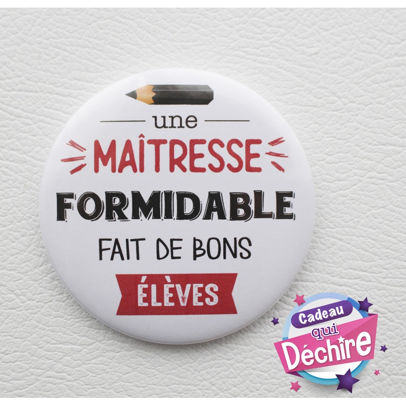 Voici un joli magnet de 75 mm dans sa pochette transparente pour offrir à la maîtresse de votre enfant.