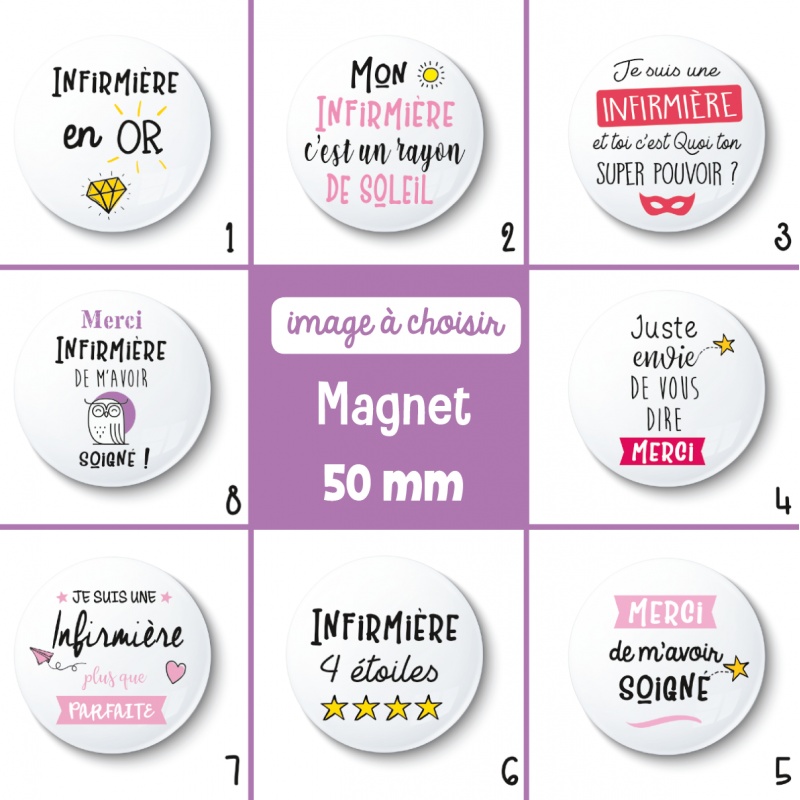 Magnet rond format 50 mm pour offrir à son infirmière pour la remercier.
