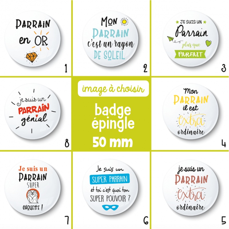 Badge épingle 50 mm à attacher partout (veste, blouse, trousse, cartable, sac...)