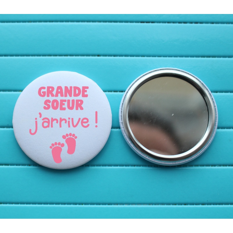 miroir de poche rond format 50 mm à offrir pour annoncer une grossesse.