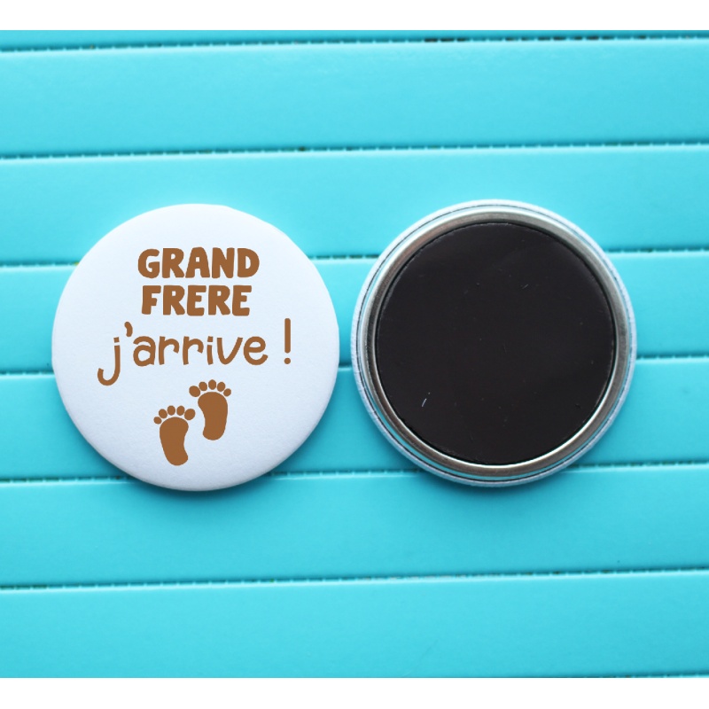 Magnet rond format 50 mm à offrir pour annoncer une grossesse.